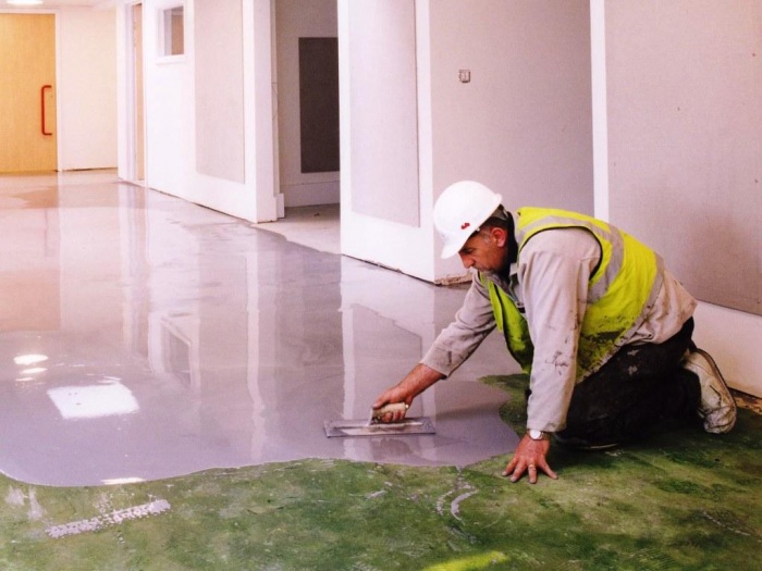 Для выравнивания полов Вам потребуется кисть, стальная гладилка, молоток и валик. Для начала необходимо заполнить впадины, потом небольшими количествами выливать смесь на поверхность пола, распределить по всей поверхности валиком и разровнять стальной гладилкой. Через 12 часов Вы можете приступать к укладке полов.